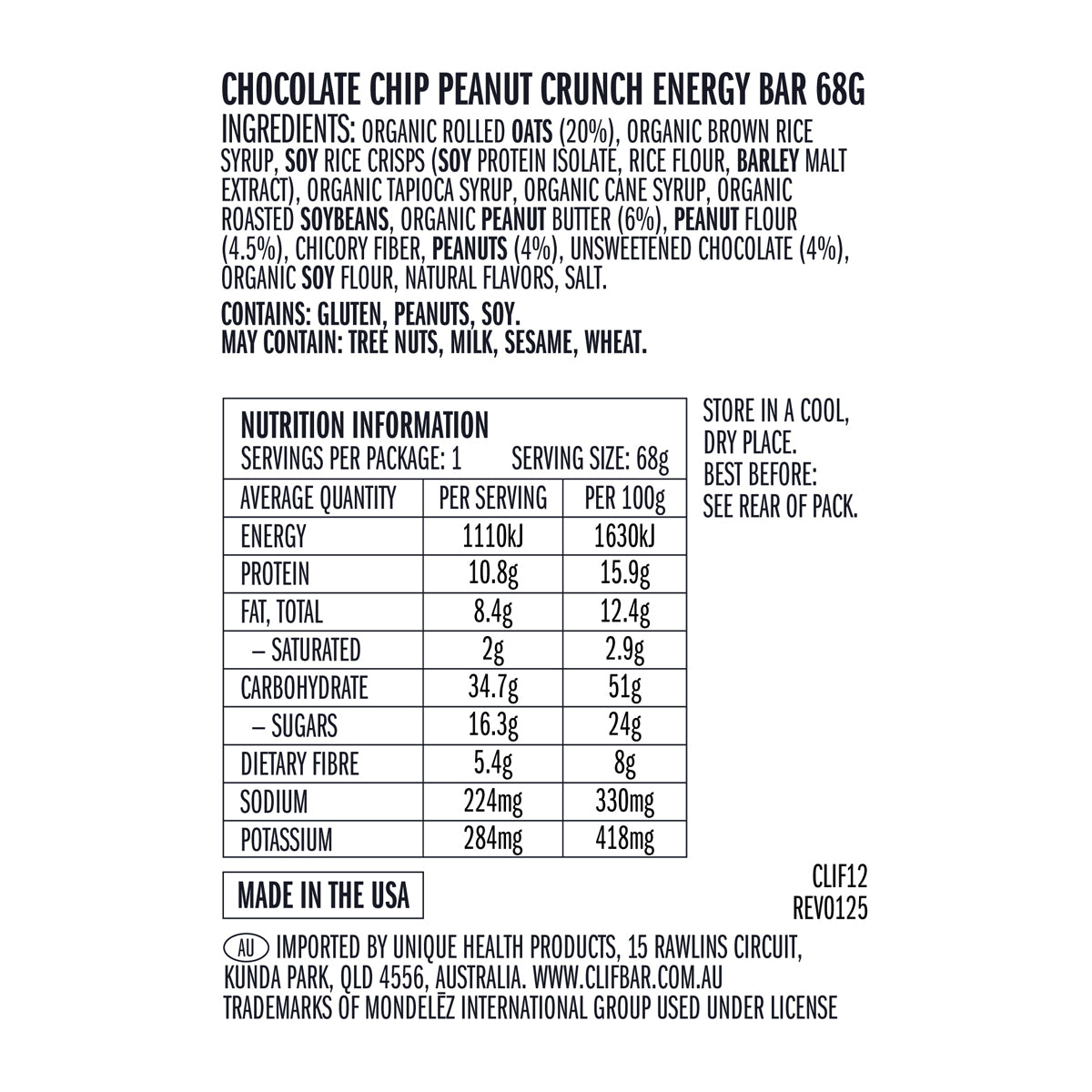 CLIF Energy Bar Chocolate Chip Peanut Crunch 12 x 68g